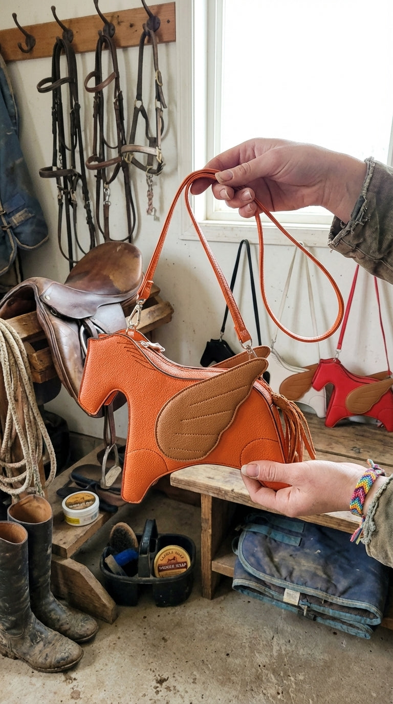 Every detail was designed with horse girls in mind — from the hand-stitched silhouette to the tan saddle patch that feels like it belongs on a tack wall. The crossbody strap keeps your hands free for what actually matters, and the tassel adds just enough personality without trying too hard. This isn't a novelty bag with a horse slapped on it — it's the bag you've been looking for since you were 12 and nobody made one that actually looked good.